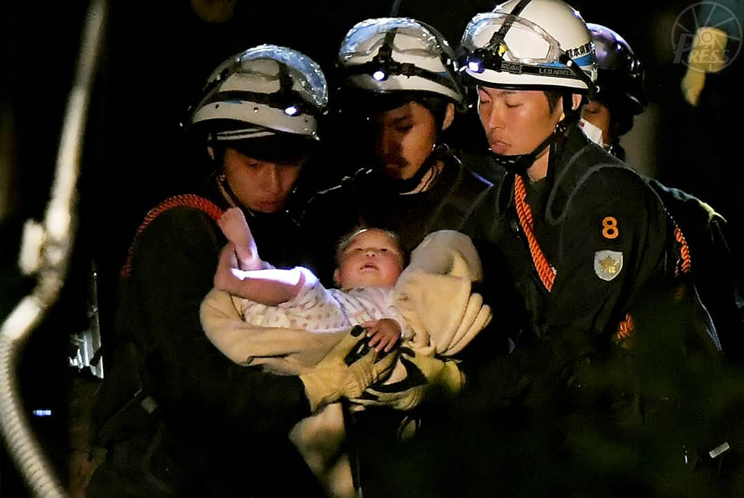最初に震度7を観測した前震で倒壊した家屋から救出された女児 (4月15日 熊本県益城町)