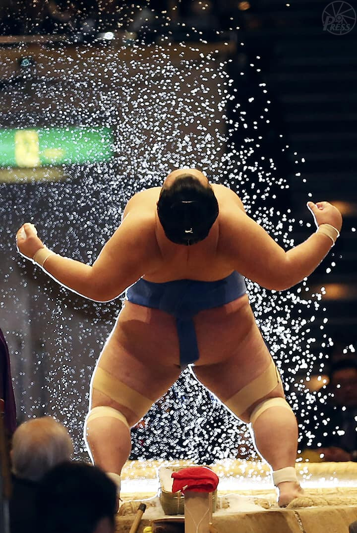 豊ノ島との取り組み前に琴バウアーで気合を入れる琴奨菊(1月22日 両国国技館)