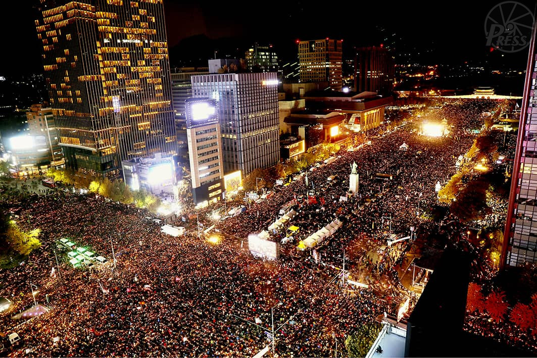 朴槿恵大統領が支援者に機密文書を渡していた問題などをめぐり、大統領の辞任を求める大規模集会が開かれた。(11月12日)
