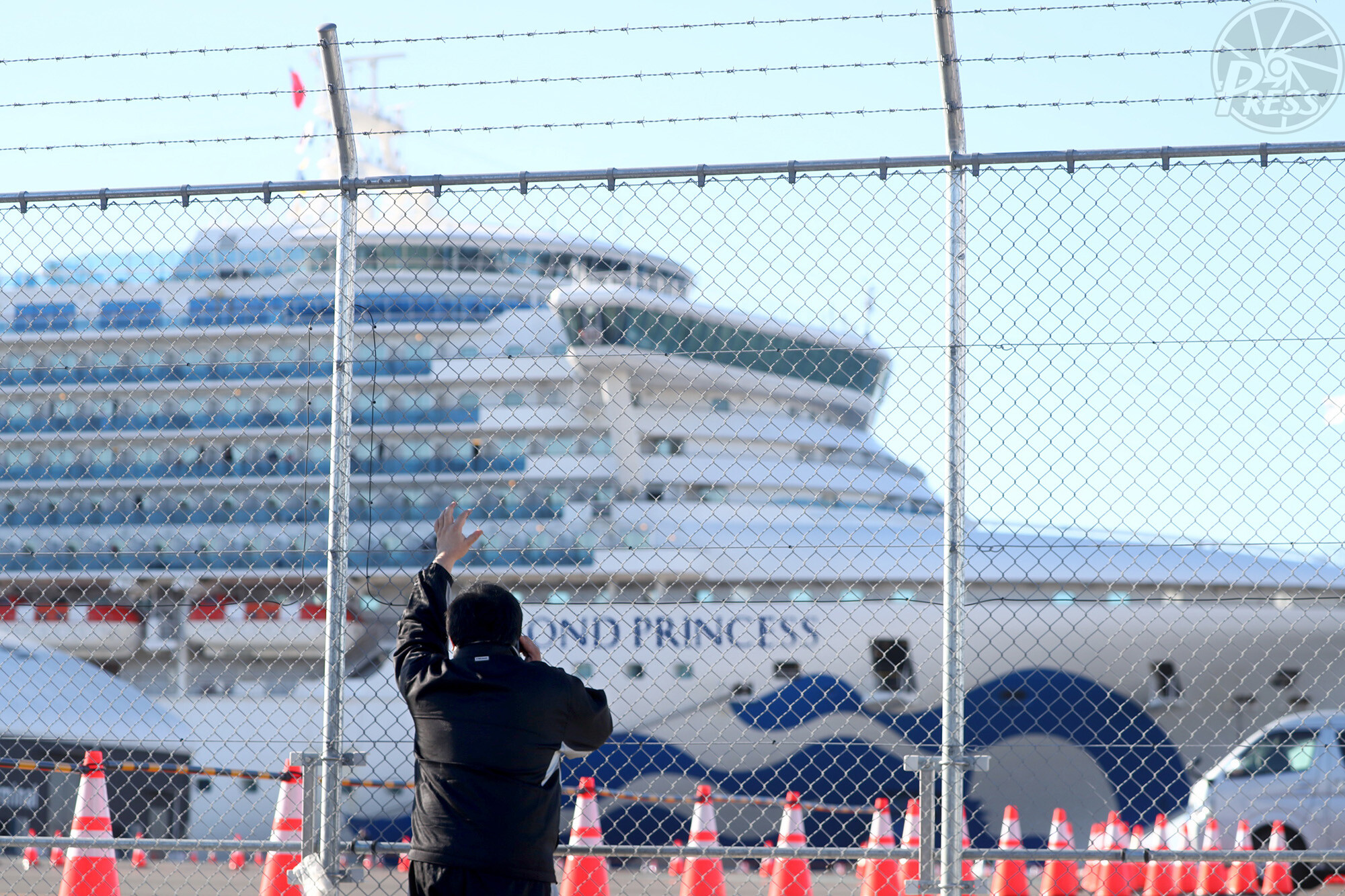 「ここだよ。見えるか?」。新型コロナウイルスの集団感染が発生したクルーズ船「ダイヤモンド・プリンセス」に乗船する幼なじみに電話をする男性。親友の姿は確認できない。「こんな目の前にいるのに」。狭い空間で不安がる親友に「元気でいろよ。飯をちゃんと食えよ」と語りかけた。(横浜市鶴見区 2月9日)