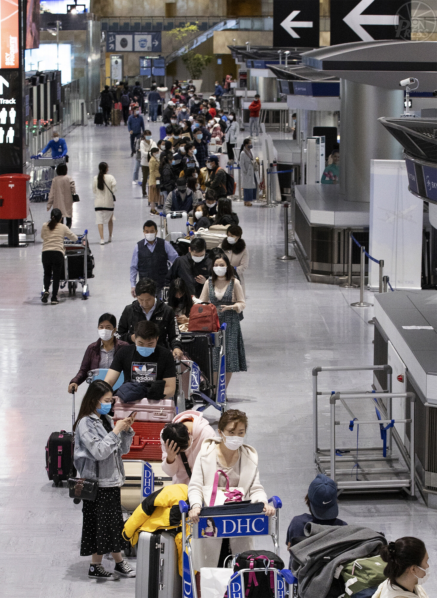 コロナ禍で仕事を失いながらも定期便の欠航で帰国ができなかった外国人労働者。ベトナム行きの臨時便には長蛇の列ができた(成田空港 4月22日)