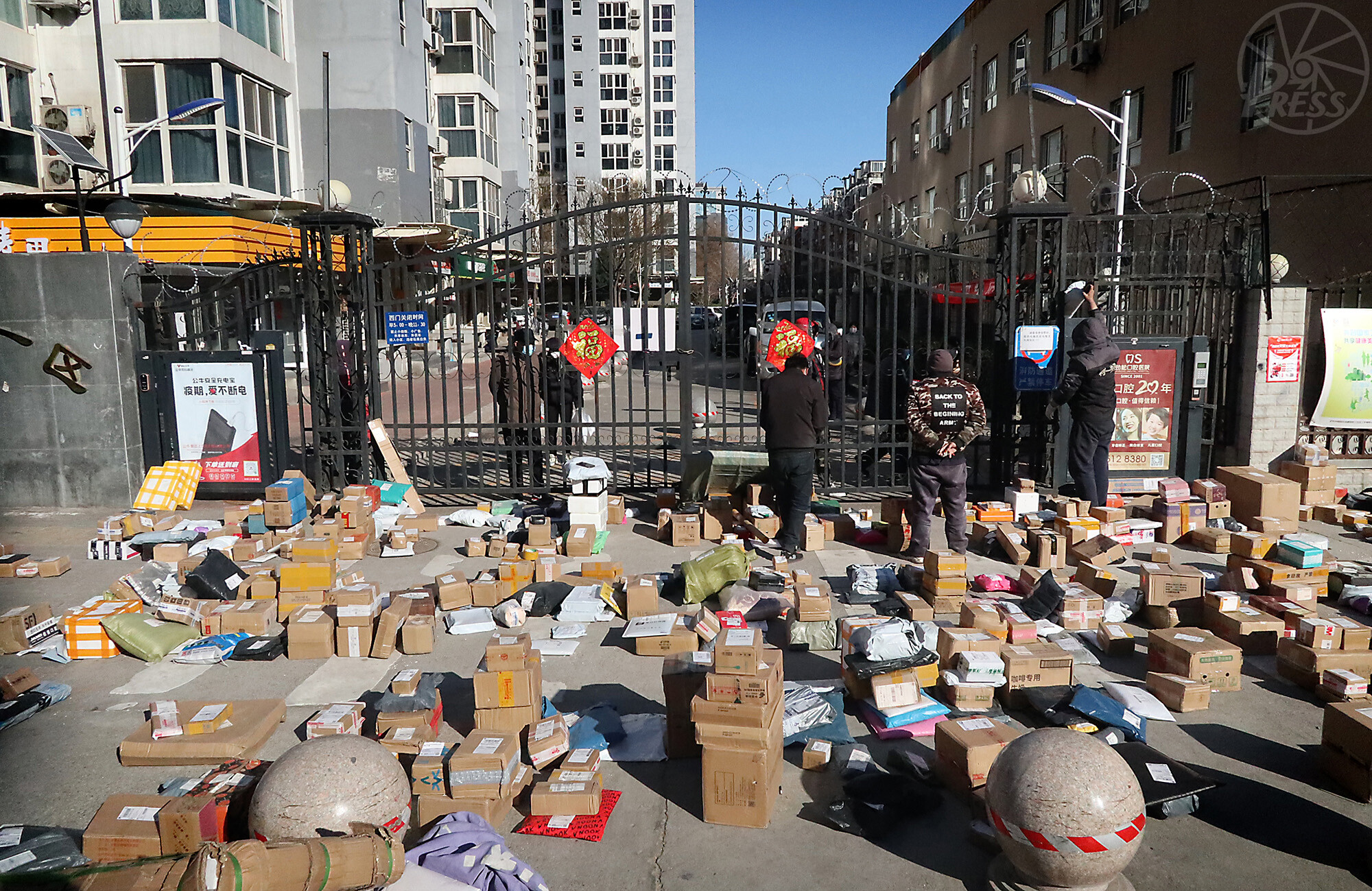外出自粛でネット通販が増える一方で、集合住宅前には置き配の荷物だけが増えていた(3月3日)