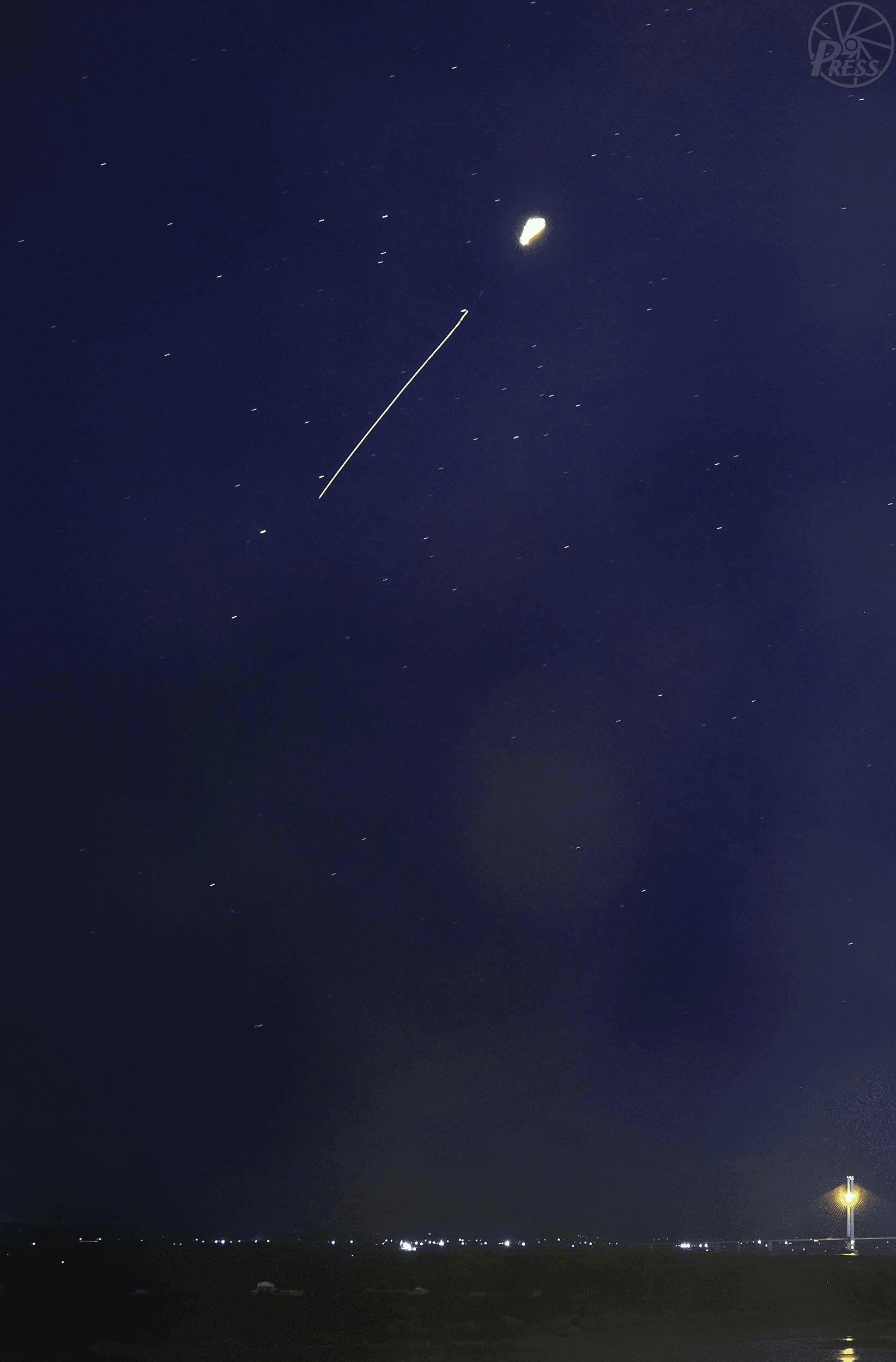 北朝鮮が弾道ミサイル技術を使ったロケットを発射したが、直後に空中で爆発した。ロケットには軍事偵察衛星「万里鏡1-1号」が搭載されていた。上昇するロケットの光跡が一瞬途絶えた後に強い光を放って消失した。発射の情報を受け、日本政府は沖縄県を対象に「Jアラート」を発令し、一時避難を呼びかけた(中国・丹東から)