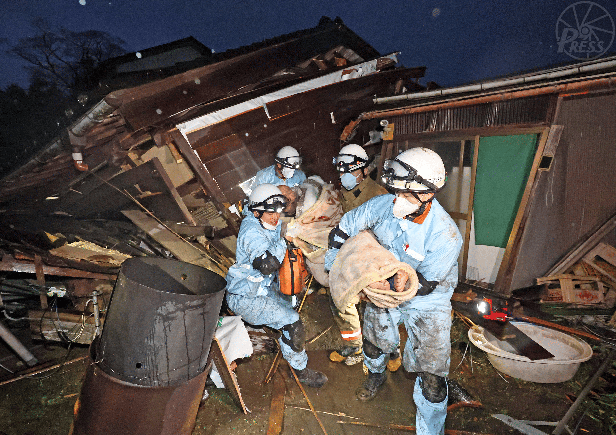 能登半島地震で、発生から49時間後、全壊した自宅から奇跡的に救出された江表大司郎さん(79)。崩れ落ちた家財に挟まれ徐々に意識が遠のく。何度も死を覚悟したが、助けに来た孫の呼びかけに最後の力を振り絞り生還した(石川県珠洲市)