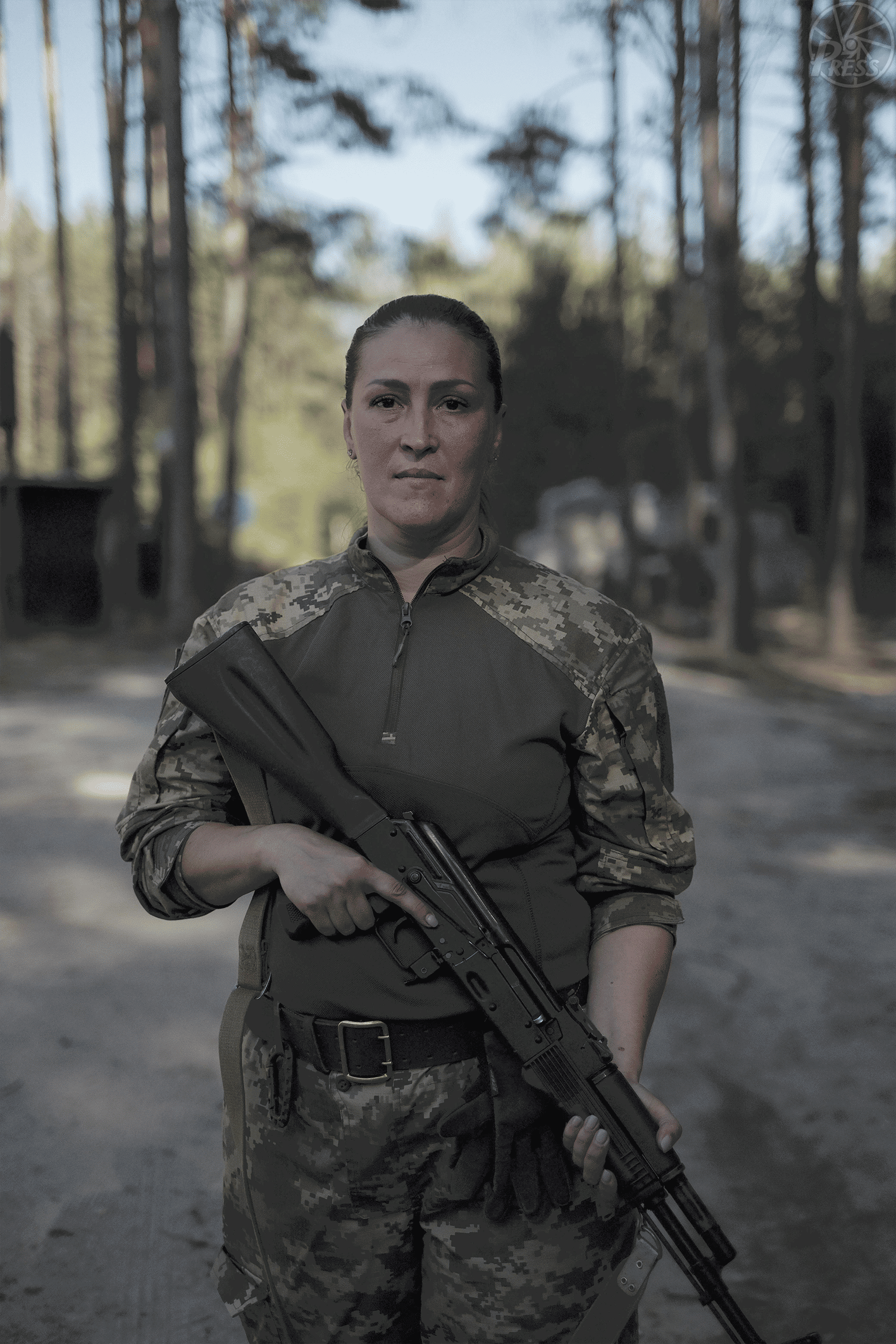 ウクライナ・キーウ近郊ブチャで「領土防衛隊」の女性防空部隊に所属するタティアナさん。夫がロシア軍に殺害され志願して入隊した。前線での「任務」を希望している。入隊前は水道局の職員だった(ウクライナ・キーウ近郊) =8月17日