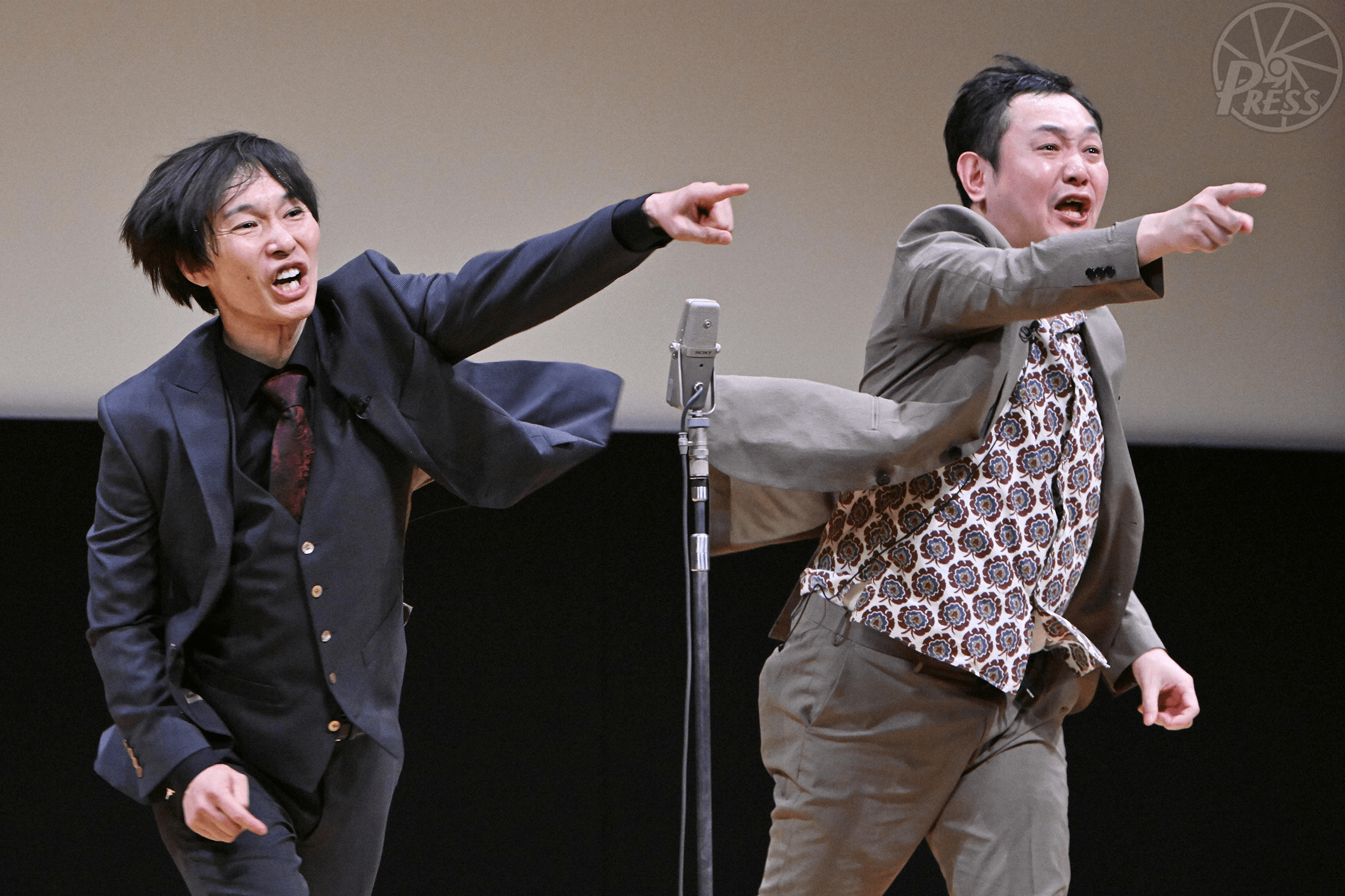 単独ライブで漫才をする滝沢秀一さん(左)と西堀亮さん
